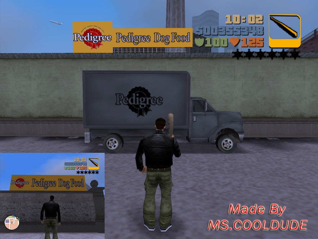 Mod podmienia starą fabrykę psiego żarcia na Pedigree Dog Food Factory oraz Yanke na wóz dostawczy Pedigree.