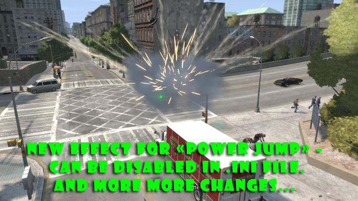 Modyfikacja dodaje do gry tryb znany z gry FlatOut 2 - kaskaderstwo poprzez wyskok przez przednią szybę z samochodu. Skrypt nalicza przebyty dystans oraz czas. Domyślny klawisz wyskoku to CTRL.