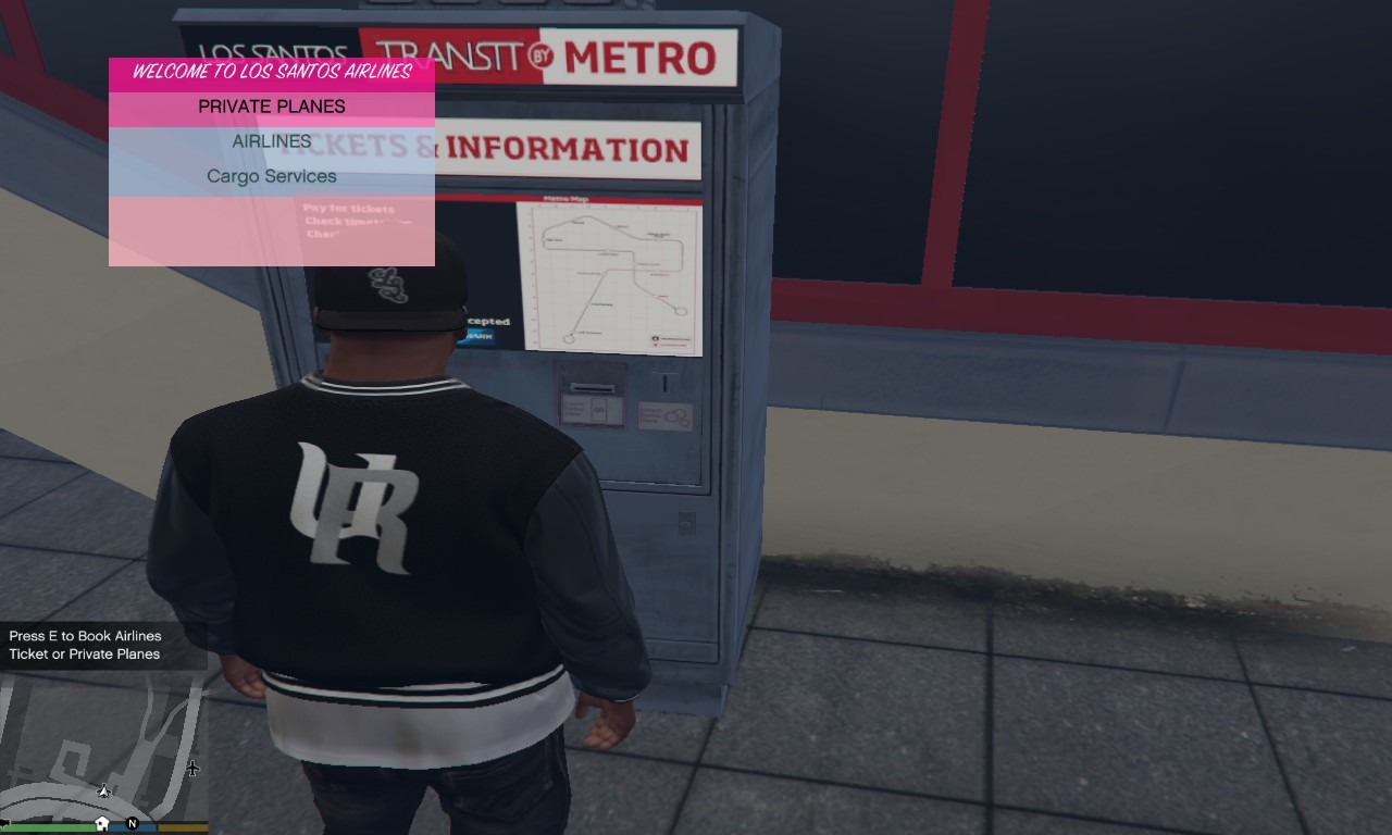 Bilet należy kupić przy automatach na lotnisku. Wciśnij "E" podczas podróży, aby wyświetlić menu opcji.